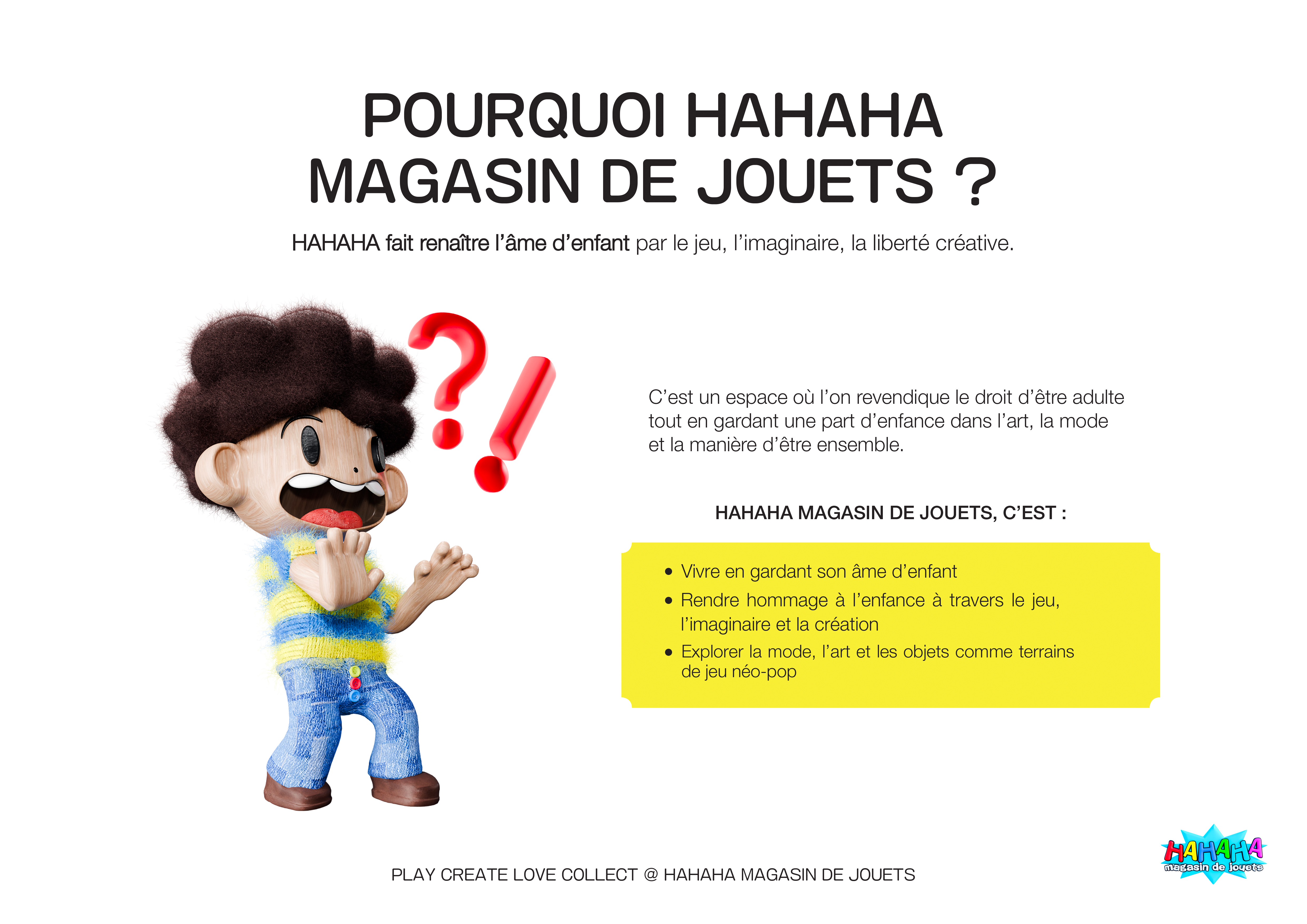 Direction artistique complète : identité visuelle, création d’objets, accessoires, jouets, peluche, textile, motion design, 3D (réalisée avec l’aide de Mathis Maimbourg), graphisme, et scénographie.